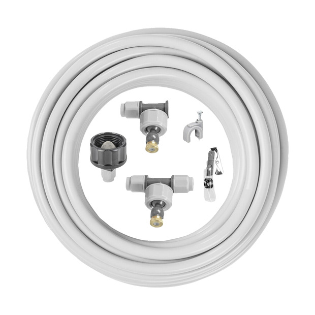 Das Wasservorhangset kann am Dach, an der Markise, am Regenschirm oder an der Pergola befestigt werden.